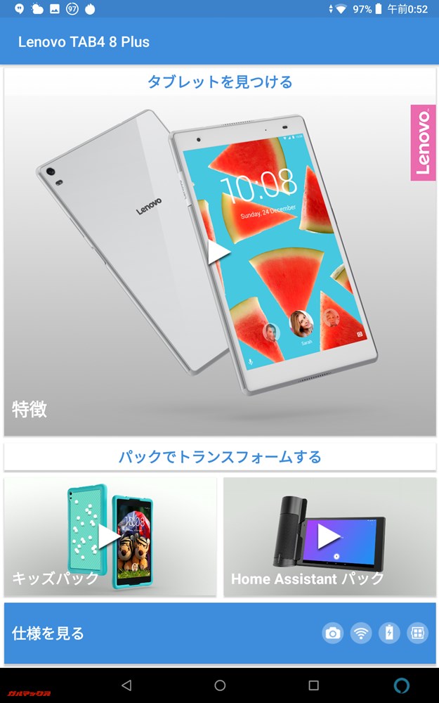 ▼Lenovo製品ではお馴染みの製品紹介アプリ。TAB4 8 Plus でも勿論あります!簡単なムービーと仕様が載っているだけのアプリですが、結構見てると面白いですよ!↓