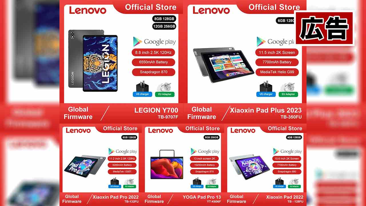 120Hz対応モデルが3万円!ゲーミング向けから動画視聴までLenovo製タブレット5種がAliExpressでセール中!