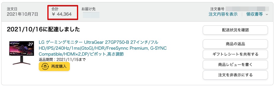 ▼購入時点の価格は44,364円!この仕様でこの価格はなかなかコスパ良さげだったのもポチった理由の1つです!↓