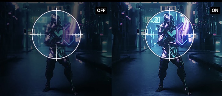 これ、ゲームの演出でクロスヘアが見ずらい又は表示されないシーンでもディスプレイ側でクロスヘアを常時表示出来るもんだから優位に戦えちゃうんです。これ使っちゃうとクロスヘア表示に対応していないディスプレイは使えなくなるかも。