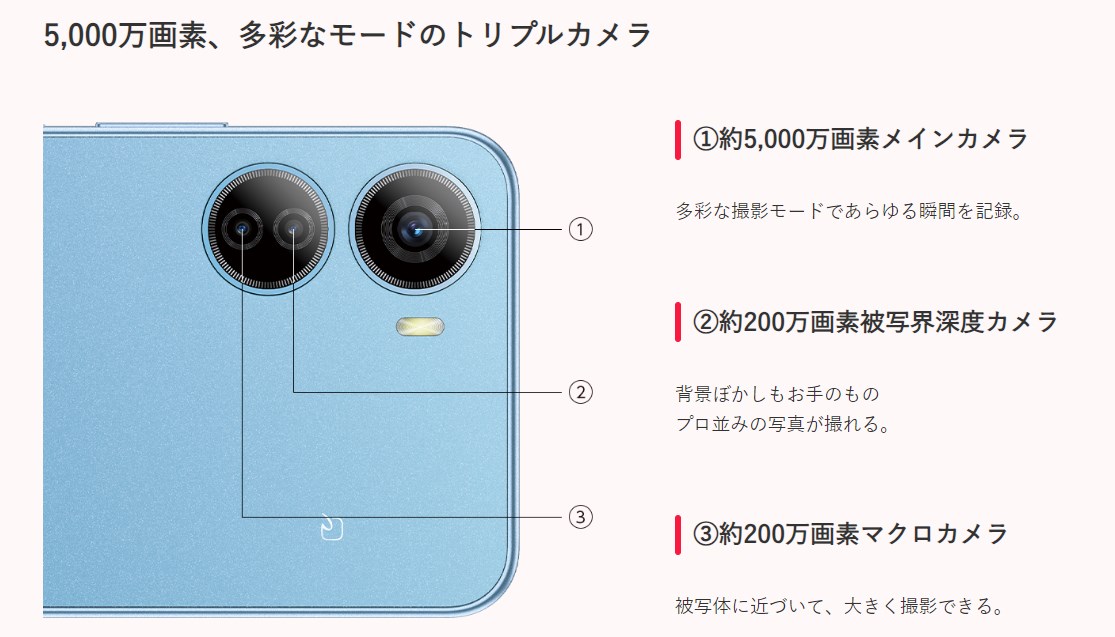 - メイン+深度+マクロの3カメラ