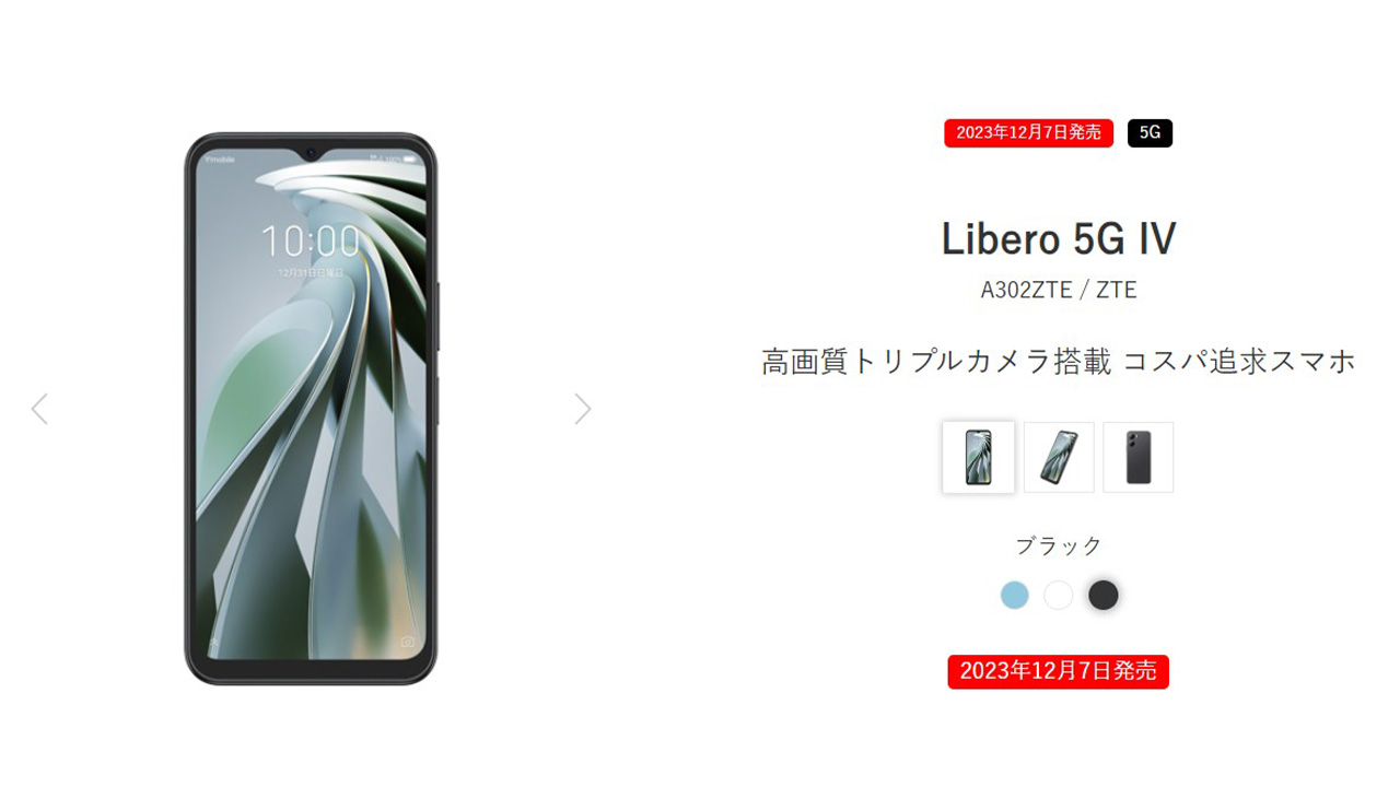 ソフトバンクがワイモバイルで2023年12月7日に「Libero 5G IV(A302ZTE)」を発売すると発表。2世代前となる2021年12月発売のLibero 5G Ⅱから3世代にわたり同じDimensity 700を搭載。流石に厳しいんじゃ無かろうか…。とりあえず特徴やスペック、対応バンドをまとめてみた。