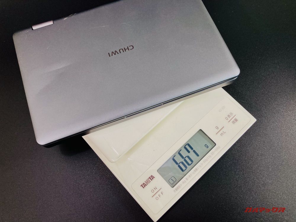 軽い軽いと言われてもピーンとこないので、さすがに超軽量&コンパクトな僕の8型UMPCよりは重いだろうと測定してみたら。。。まじかよ。LIFEBOOK UHのが軽いじゃん。