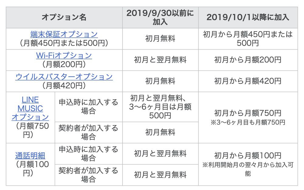 2019年10月1日より、有料オプションの初月、もしくは初月と翌月無料サービスが廃止され、初月から月額料金がかかるようになります。 対象オプションと料金の変更内容は下記の通りです。(価格は全て税抜)