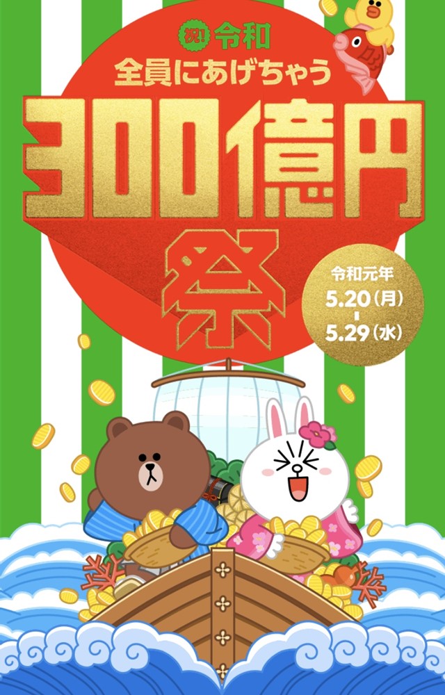 【2019年5月30日追記】5月29日まで開催となっていた「祝!令和 全員にあげちゃう300億円祭」ですが期間延長を決定。総額300億円がなくなり次第終了となるみたい。まだ参加していない方は是非チェックしてみて下さい!