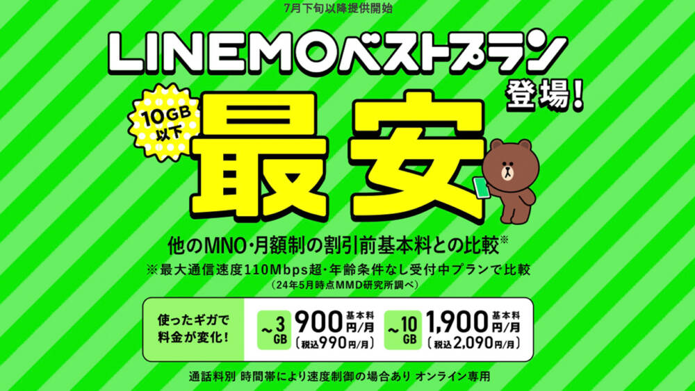 ソフトバンクのオンライン専用ブランド「LINEMO」で新プラン「LINEMOベストプラン/V」が発表されました。待望の段階制プラン!2024年7月下旬以降に提供開始とのこと。