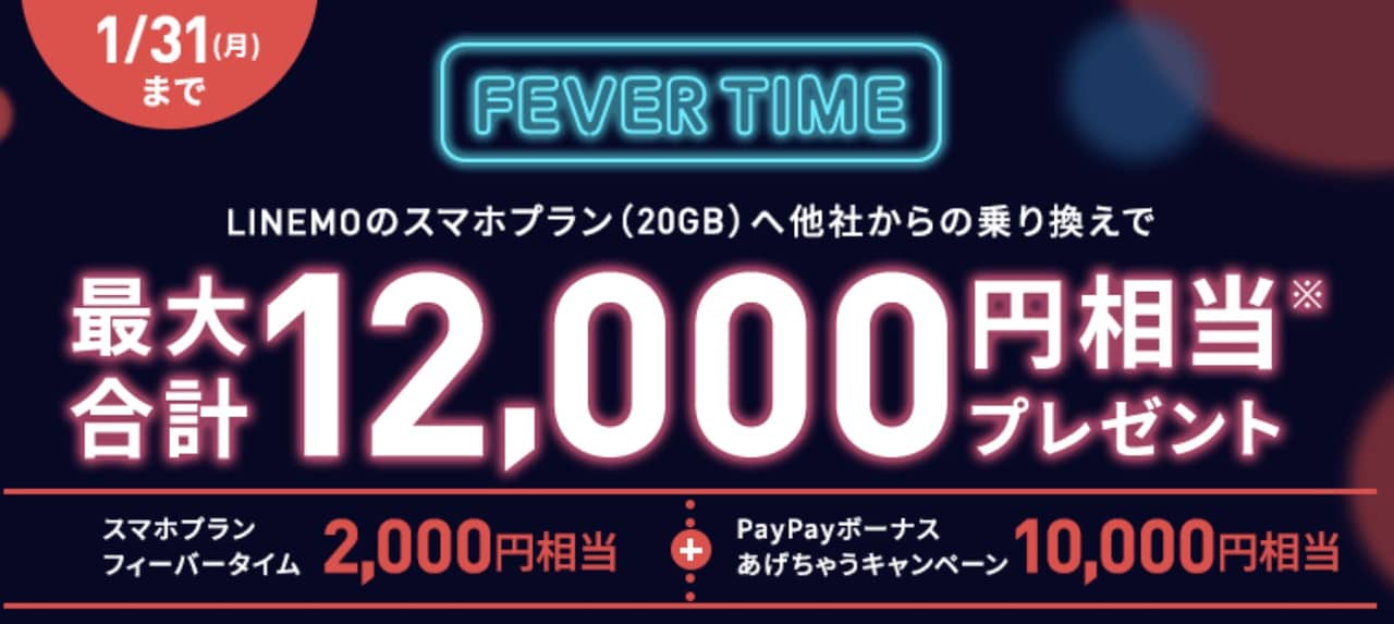 LINEMOへMNPを予定しているなら週末がおすすめ!PayPayボーナスが最大1.2万円貰えるキャンペーンやってますよ!
