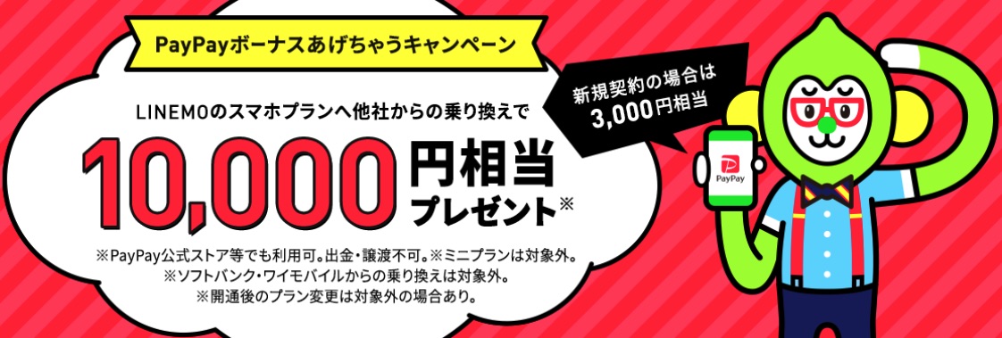乗り換えるならいま!LINEMO、PayPayで最大10,000円相当貰えるキャンペーンが復活!
