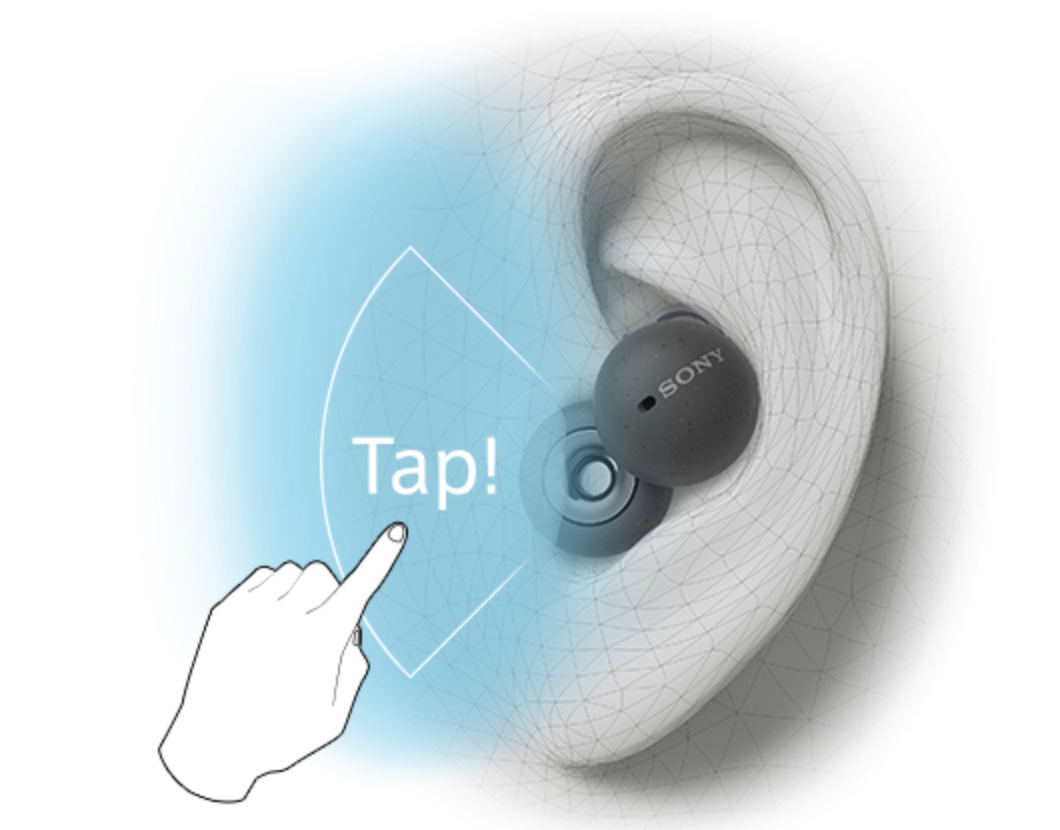 ▼イヤホンの多くはイヤホン自体をタップして操作するタイプが多いんですが、LinkBudsは顔の耳周囲をタップすることで操作できるんです。↓