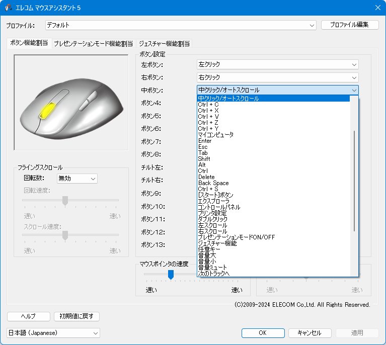 あと「押してクリック操作」「押したまま動かしてジェスチャー操作」という操作の共存も非対応。例えば「ホイールクリックはいつもどおりのミドルクリック操作」のままに「ホイールをクリックしたまま動かすことでショートカット操作など特定操作ができる」というのは出来ません。
