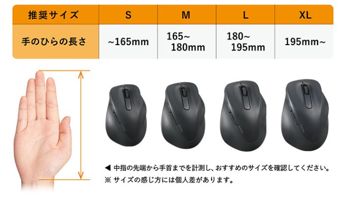 なおこのM-XGXL30DBSK、左手向けのタイプやサイズ違いとしてS、M、Lサイズが存在します。また接続方式も有線、無線レシーバー、Bluetooth無線の3タイプが用意されていますよ!