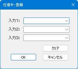 ▼さらに任意キーって項目で、最大3つまでキーボードの同時押し入力に対応しています。一覧から選ぶのも良し、直接キーを打って入力もよし。筆者はクリップボード呼び出しで「Ctrl+G」をホットキーに充ててるんだけど、それが一発でできるのはありがたい!↓
