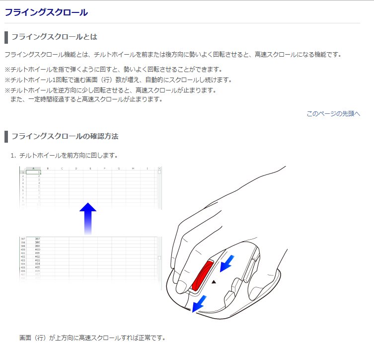 ▼Logicoolの一部マウスでも似たような物があり、勢いよく回せばページがスクロールし続けるというのは同じなんだけど、挙動はかなり安定しません。いくら勢いよく回しても高速スクロールしないときもあれば、回してなくてもずっとスクロールし続けてしまったり。制御がまともにできんです。↓