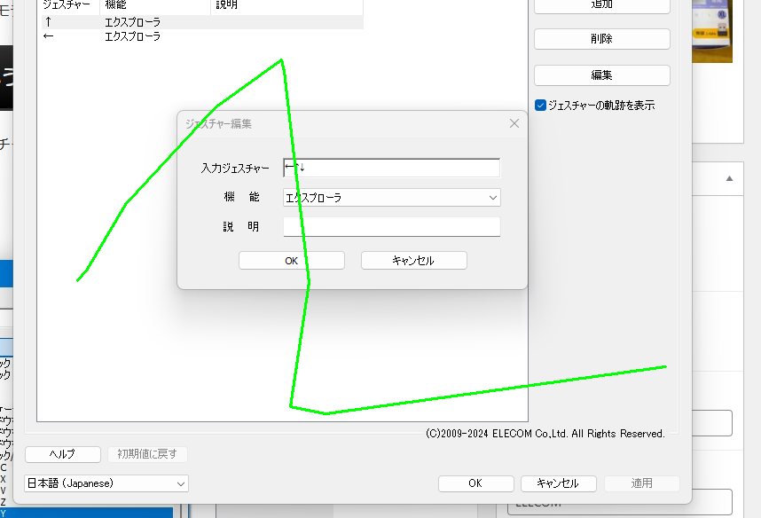 ▼ジェスチャーはボタンを押しながら上下左右に動かすと操作でき、こんな感じで緑色の軌跡が出てきます。こうやってどのアクションを起こすかの設定を組めるのもGood。↓