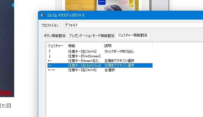 マウスのボタン割り当てにジェスチャー機能を割り当てることで、特定操作を行うこともできました。
