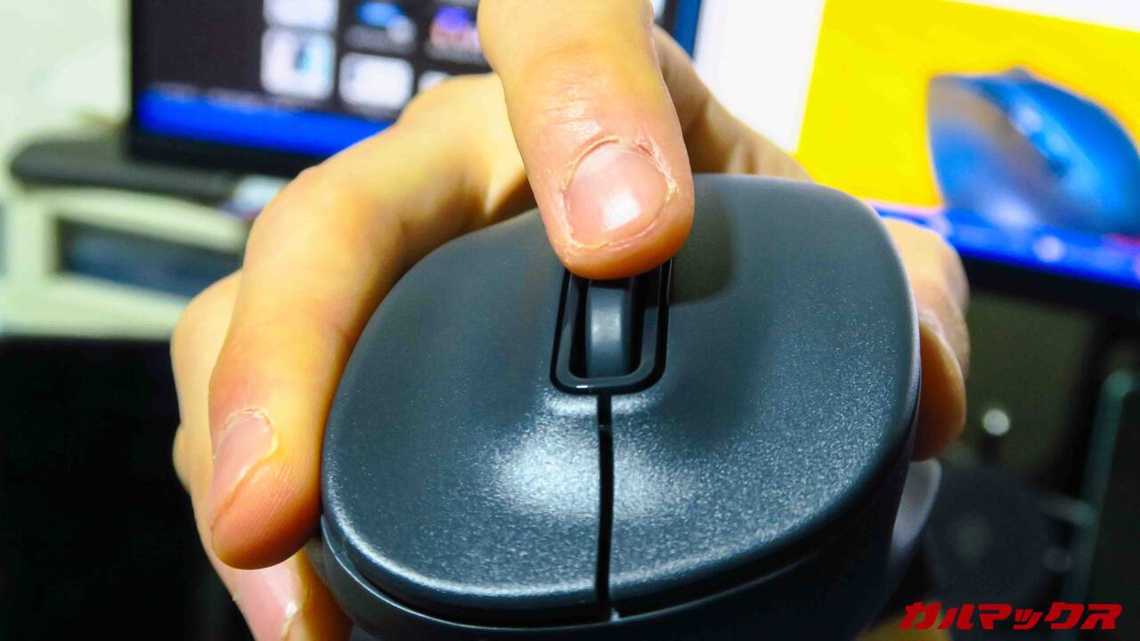 ▼またホイールボタン自体も形状は細身ながらクリックにかかる力もそれほど要求されず、押し心地も良好。グリップ性も非常に良かったです。↓