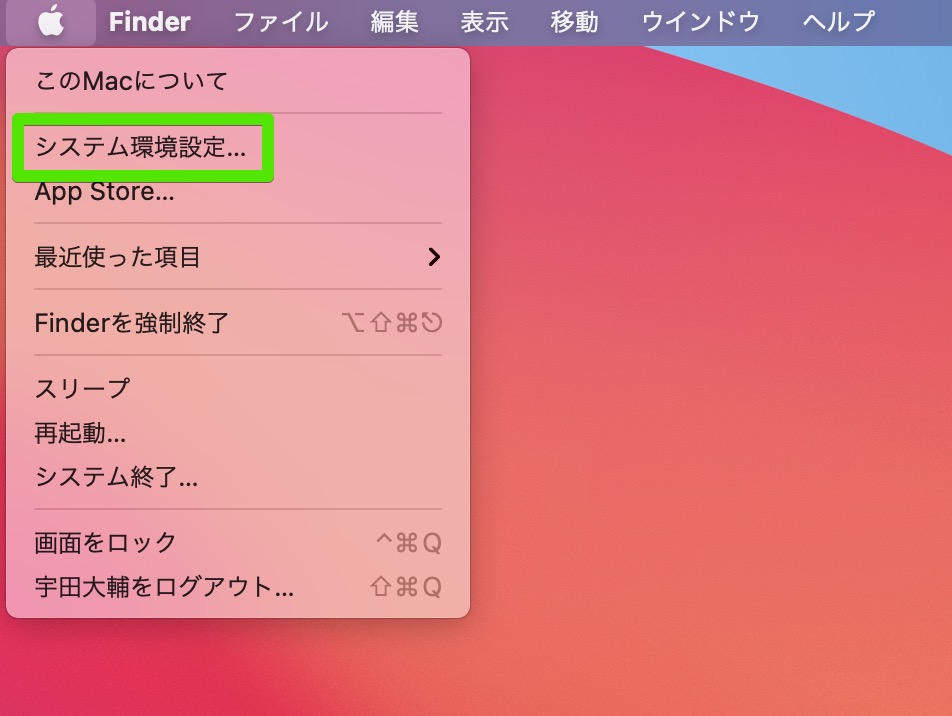 ▼システム環境設定をクリック。↓