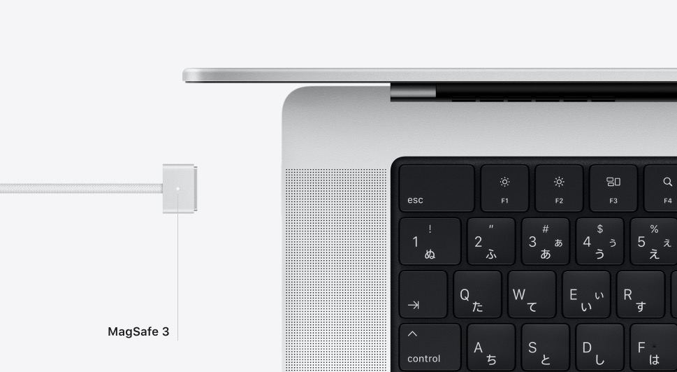 そんな安全で使い勝手の良いMagSafeがいつからか廃止され復活を求める声が多かったんですが、新型MacBook ProではMag Safe 3に対応しましたよ!