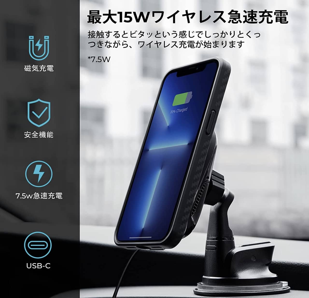 MagEZ Car Mount Proの充電性能なんですが、公式画像では最大15Wと記載がありますが注釈で7.5Wとも記載があり、調べてみたところ「iPhoneは7.5W」と記載がありました。