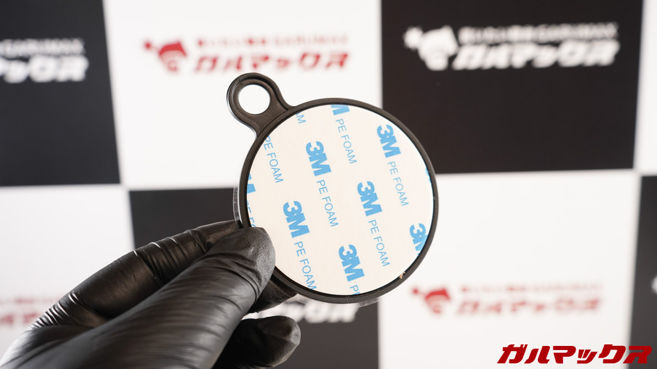 ▼こっちは3Mの強力な粘着テープが付いてます。反対側はつるつるしていてマウントの吸盤が強力にくっつくようになってました。ただ、この両面テープは取り外す時に結構苦労するタイプなので留意しておきましょう。↓