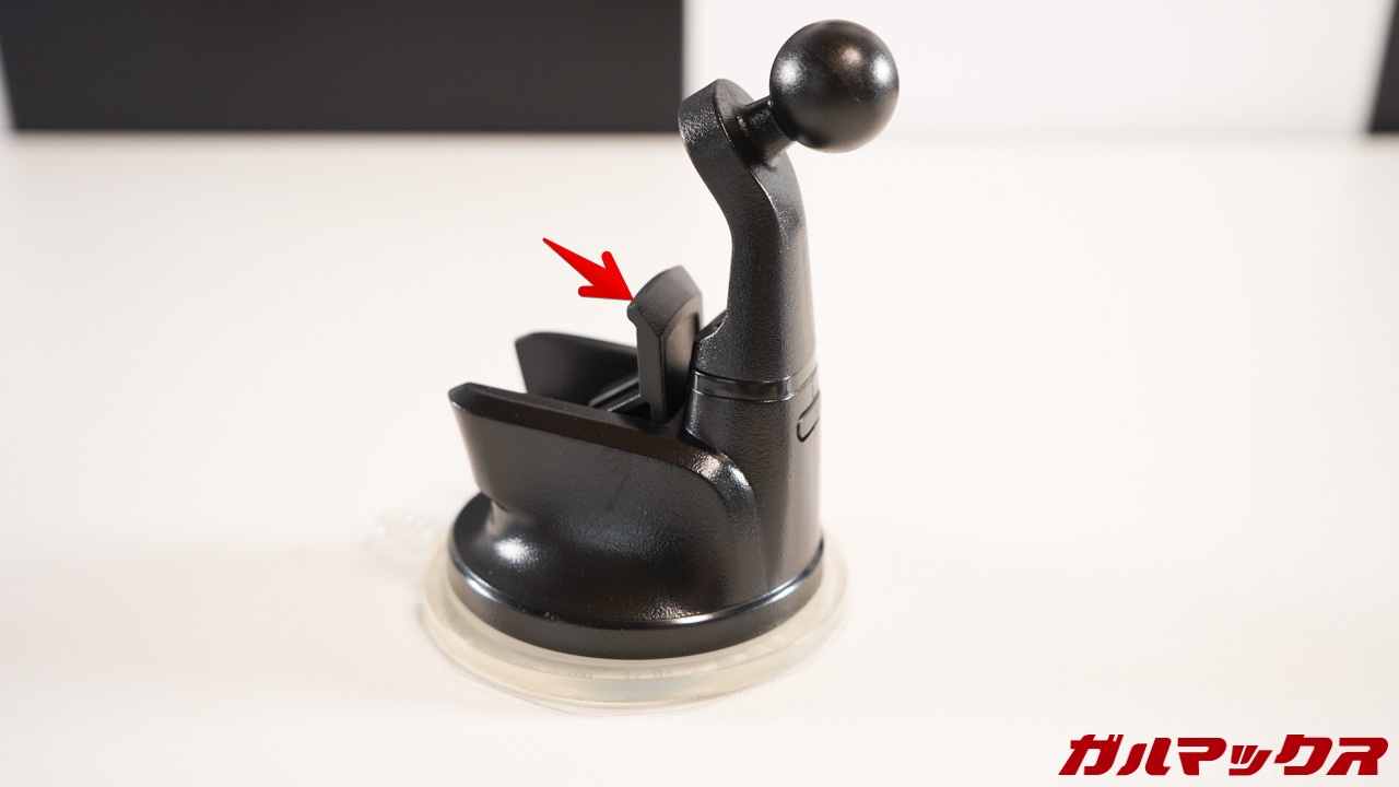 ▼マウントはこんな感じ。レバーを倒すことで吸盤内の空気を吸い込み強力に吸着します。↓
