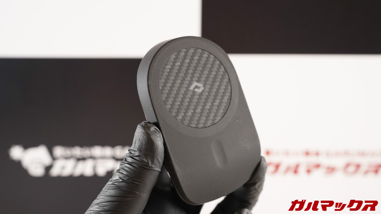 磁石でスマホを固定できるだけでなくワイヤレス充電にも対応しているので、iPhoneをくっつけると充電も一緒に行ってくれます。