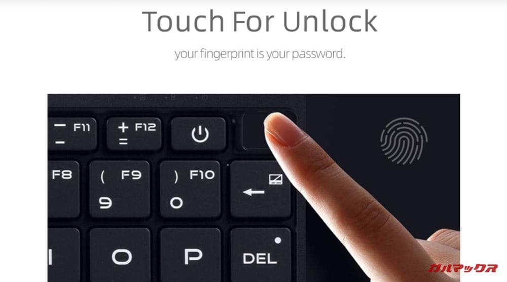 Magic-Ben MAG1はなんとキーボード右上に指紋認証センサーを搭載しています。筆者もMacBook Airで指紋認証センサーを使っていますが、あるとパスワード入力の手間が省けて便利ですよね。