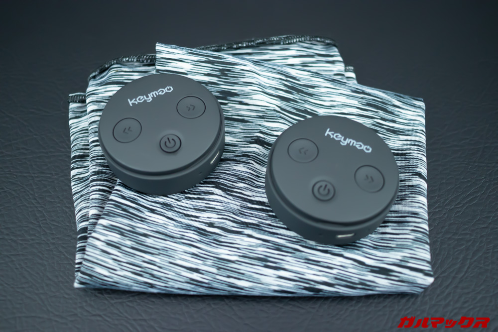 ▼本体はこんな感じで直径は約5.5cmほど。ボリューム/曲送り戻しボタンが2つと電源ボタンが備わってまして、ボタンも大きめで操作性が良さそう。→追記:ボタンが大きくて推しやすかった!ボリュームも長押しで調整できるんだけど上手く調整出来ているんで好みの音量にも合わせやすかった!↓