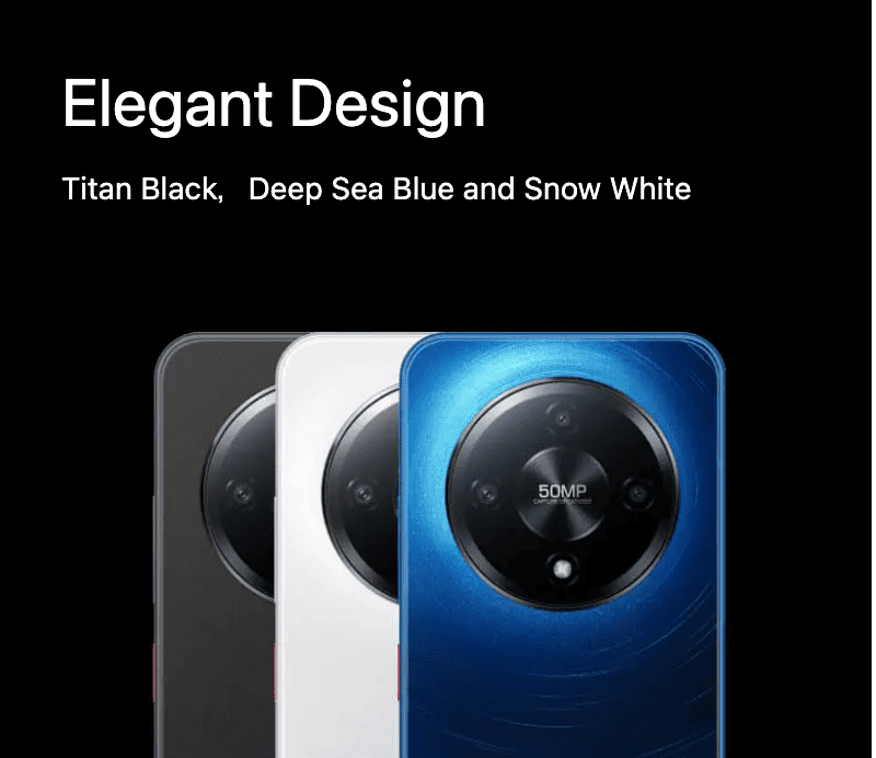 MEIZU Mblu 22 Proのカラーバリエーションは3色で、「チタンブラック」、「ディープシーブルー」、「スノーホワイト」の定番と言える3色がラインナップされています。どの色も上品で、スタイリッシュな印象を与えてくれますね。