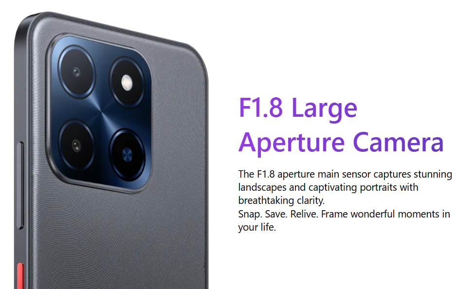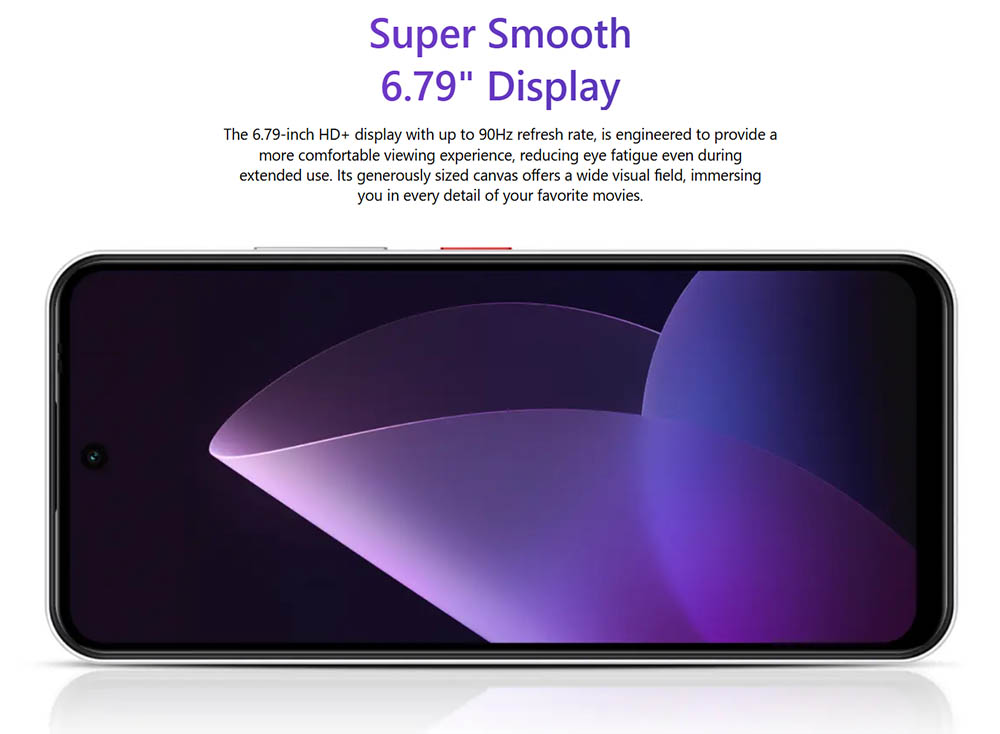 ▼ディスプレイサイズは6.79インチと大型、解像度は1640×720なのでドットの荒さが目立つかもしれません。リフレッシュレートは90Hzに対応と価格を考えれば頑張っています。なお、SoC処理が90Hzに追いつくのかは不明です。↓