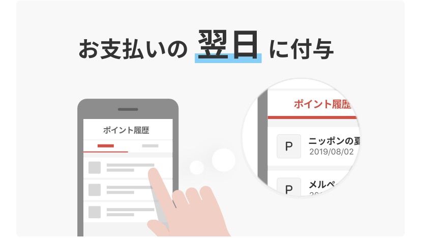 ▼メルペイ決済をした翌日にポイントで50%相当が還元されます。↓