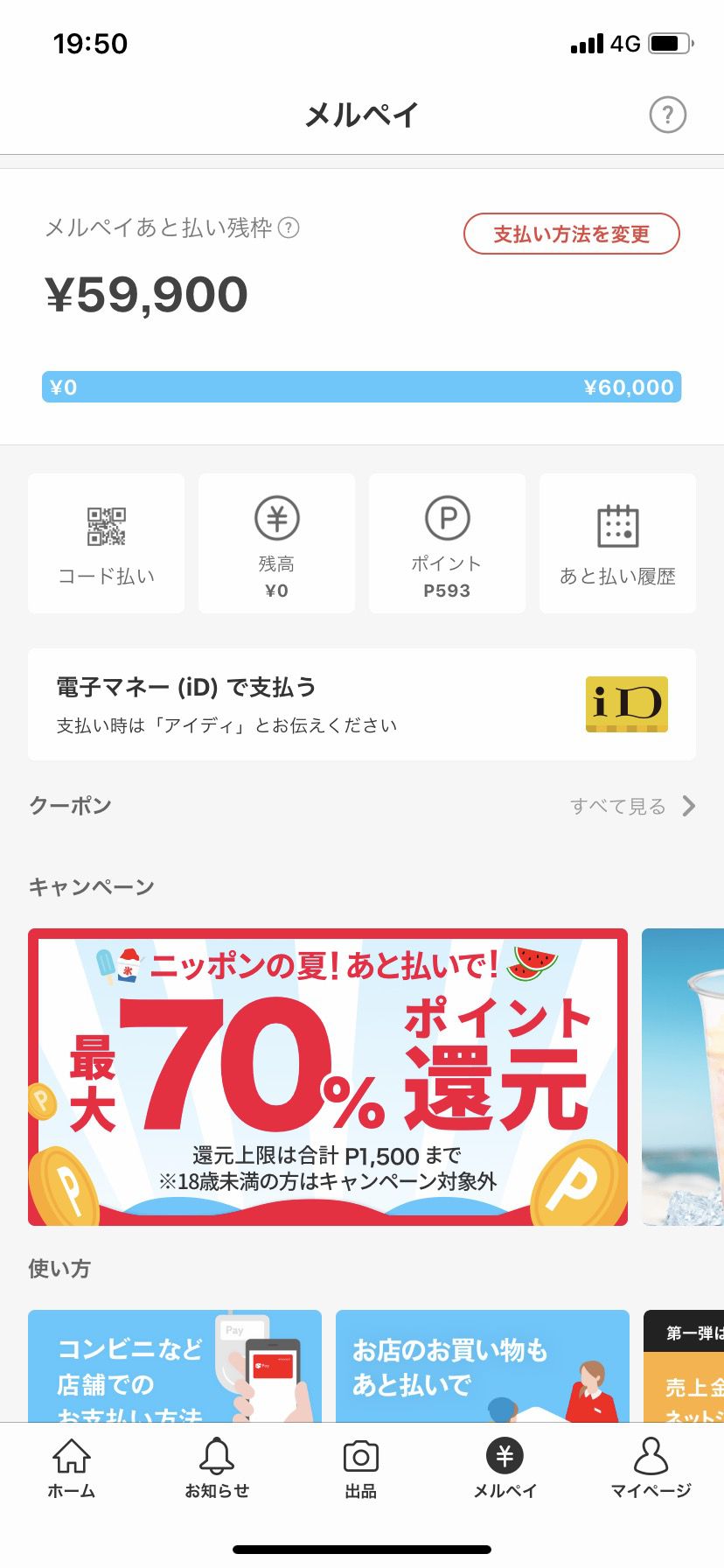 メルカリのスマホ決済「メルペイ」が8/1より最大70%還元となるキャンペーンを開催しました。1人当たりの上限額は多くありませんが還元率では圧倒的な高さです。