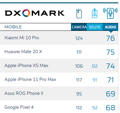 ▼DxOMarkはスマホのスピーカー等でオーディオ性能も計測しているんですが、まさかのオーディオ界でもトップをかっさらうという事態に。ここは筆者も予想できんかった。↓