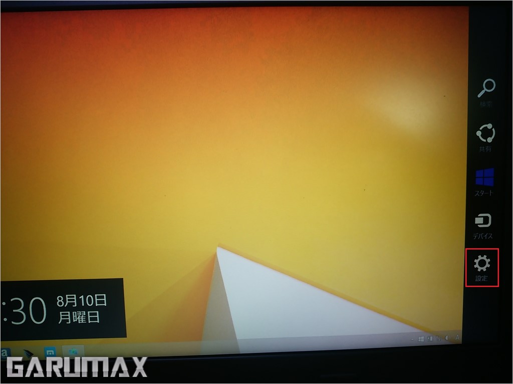 ↓マウスを画面右上から右下に移動するとパネルが表示されるので歯車マークを選択。