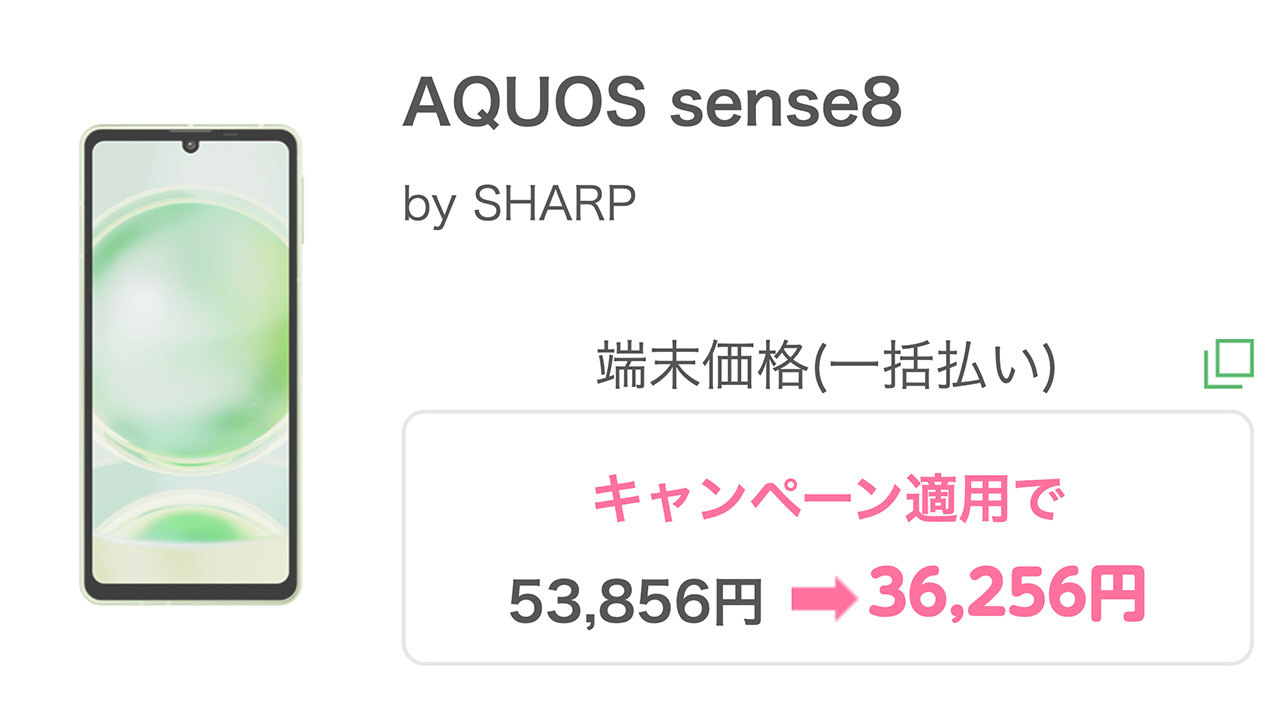mineo、MNPでAQUOS Sense8が36,256円に。機種変更でも46,156円