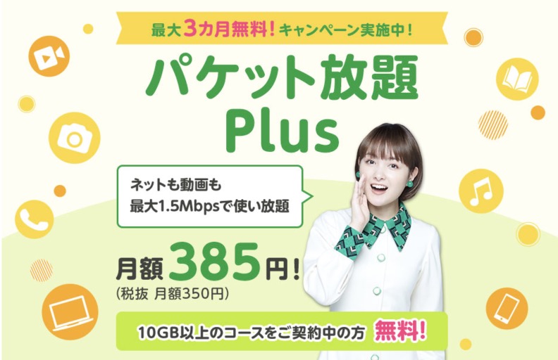 「パケット放題 Plus」は6月1日〜8月31日まで月額385円が最大3ヶ月間無料で試せるキャンペーンを開催予定。