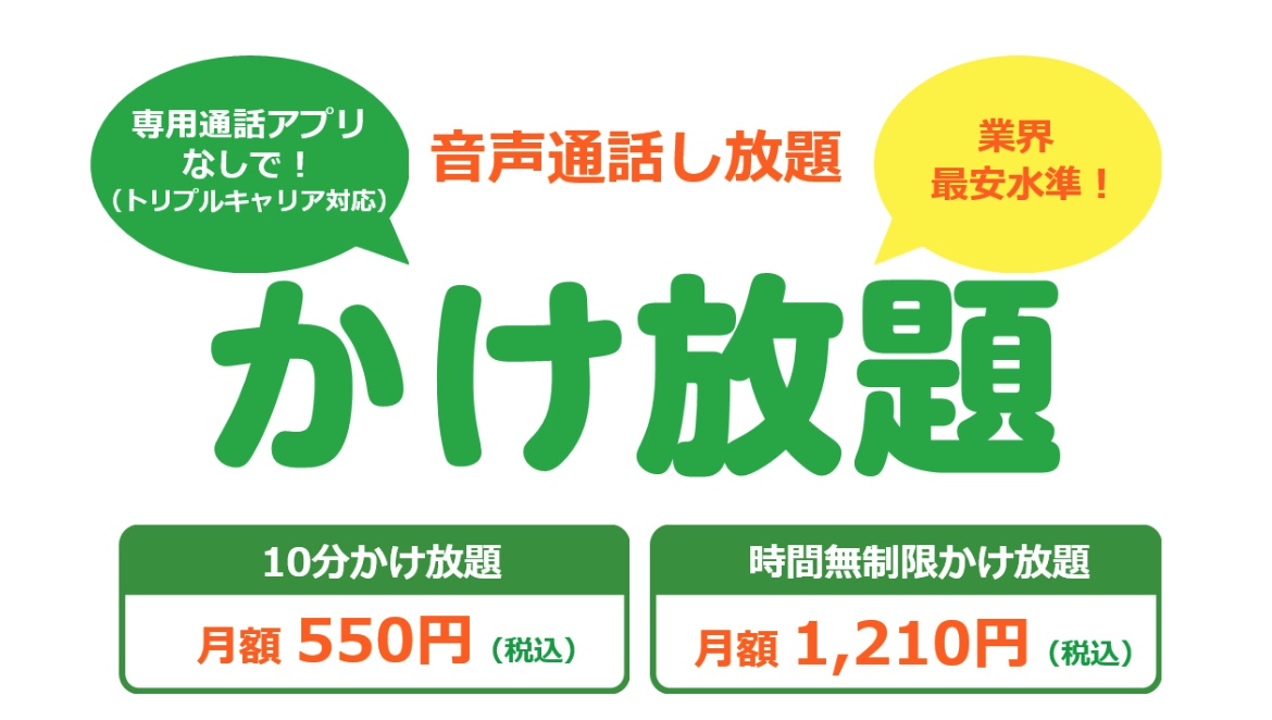 そして「大手3キャリア回線いずれにも対応」ってのもGood!つまりドコモ回線、au回線、ソフバン回線のプランであっても、このかけ放題オプションが使えるのです。