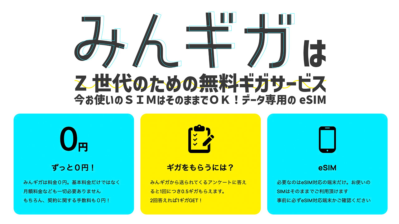 無料でギガが貰える「みんギガ」SIMのβが始まったようです!18歳から25歳以下限定
