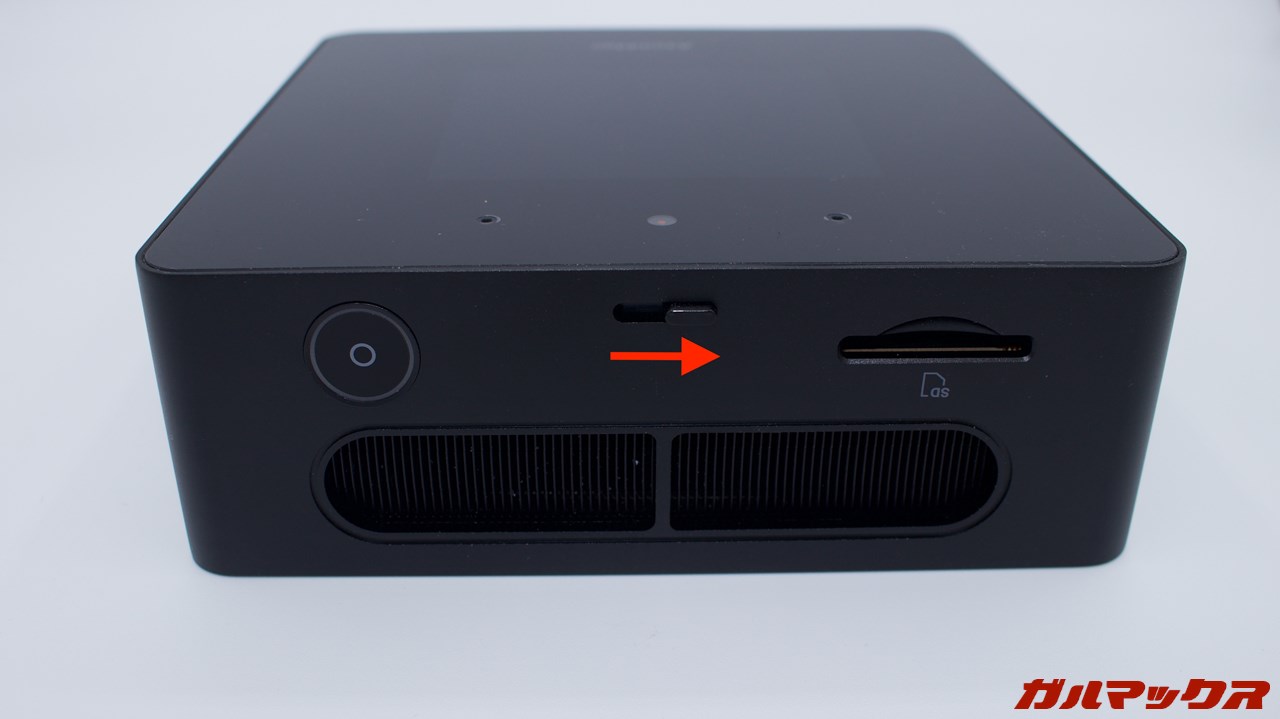 ▼そうそう。正面にはカメラシャッターが配置されているので、スライダーを右側に移動させるとカメラを物理的に塞ぐことができます。便利。↓
