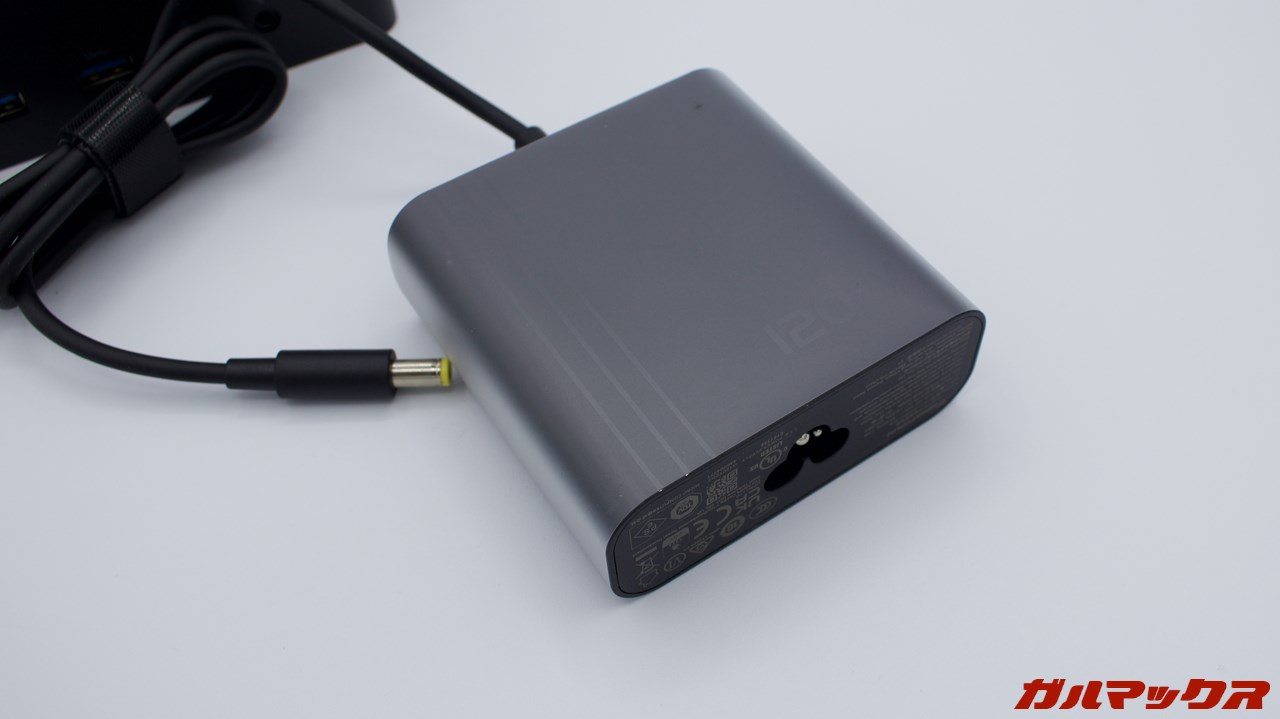 ▼ACアダプターは120Wと高出力ながらもコンパクトに仕上がっているので、取り回しが良いのはGOOD!↓