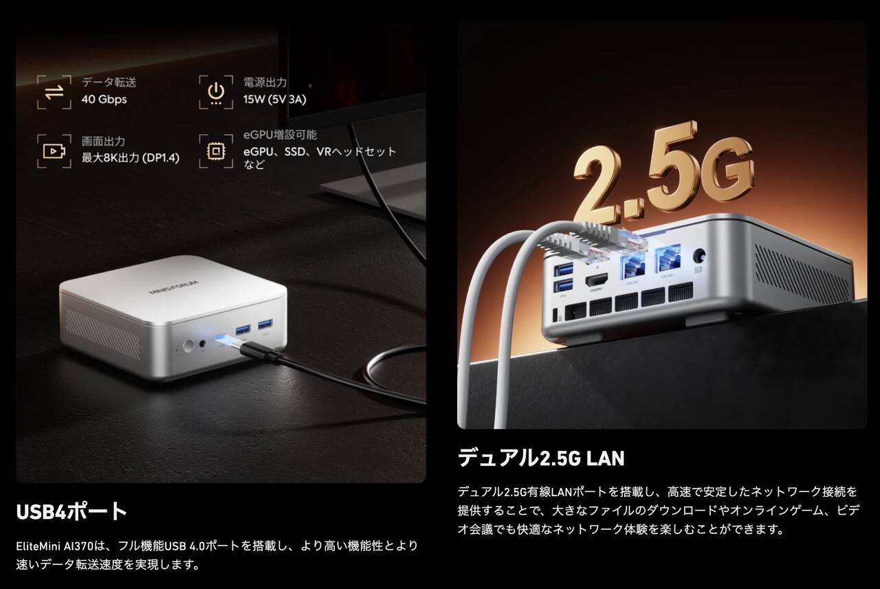 以前にガルマックスで取り上げていたMinisforum製Ryzen AI 9 HX 370搭載ミニPC「Minisforum EliteMini AI370」が実際にリリースされていたので紹介していきます!
