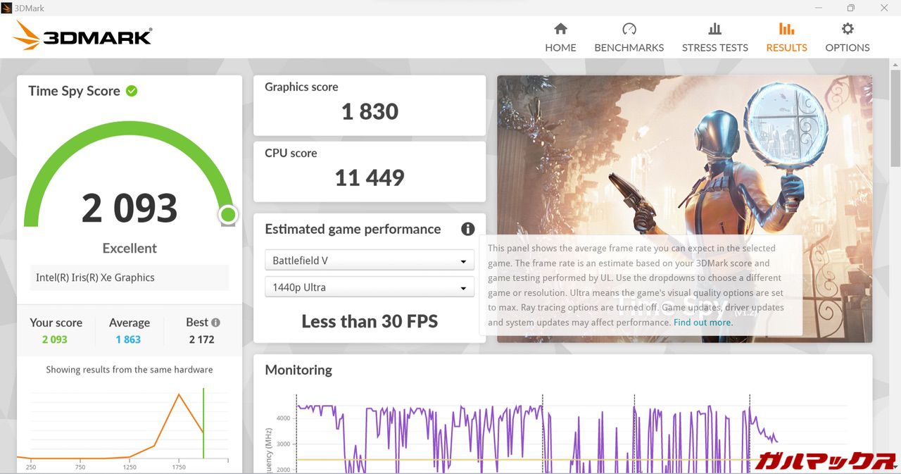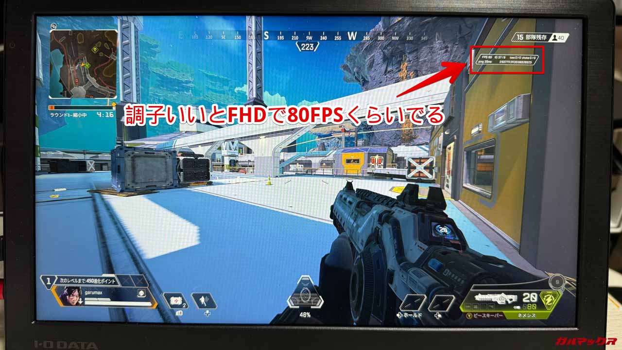 ▼GPUはIntel Iris Xe Graphicsなんだけど、APEXだとある程度画質を下げることでFHDでも平均60FPSでプレイできちゃった。↓