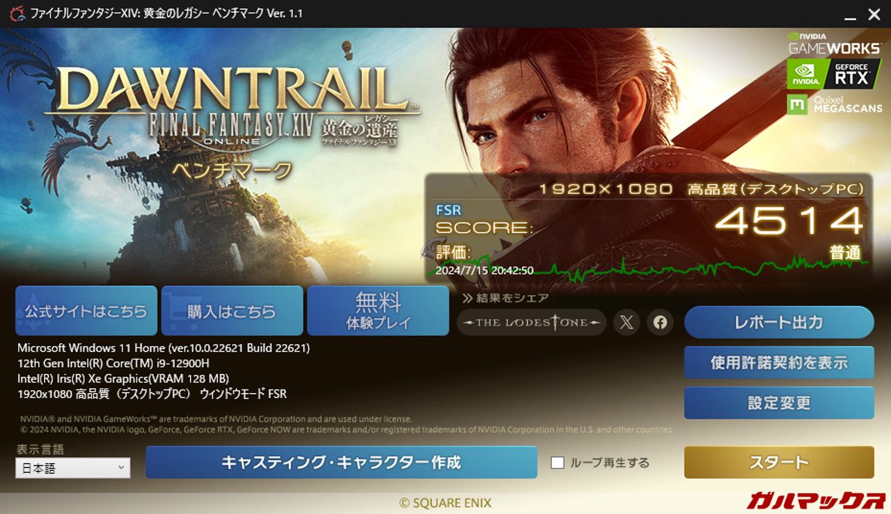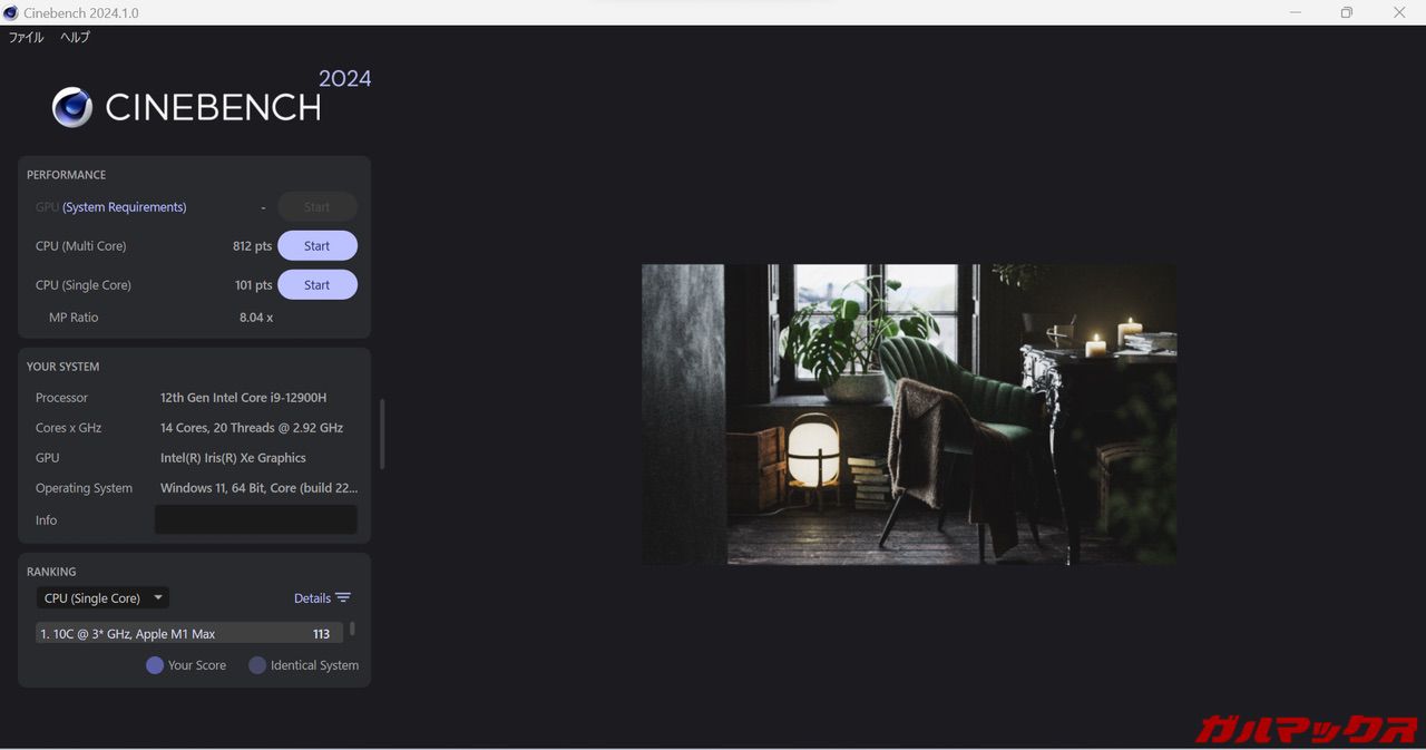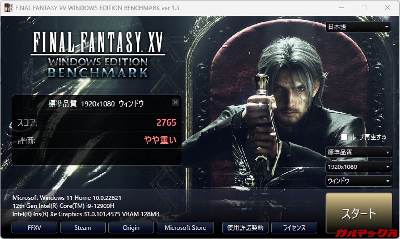 せっかくなんでCore i9 12900H版のベンチマークをやってみました!参考にしてみて下さい!
