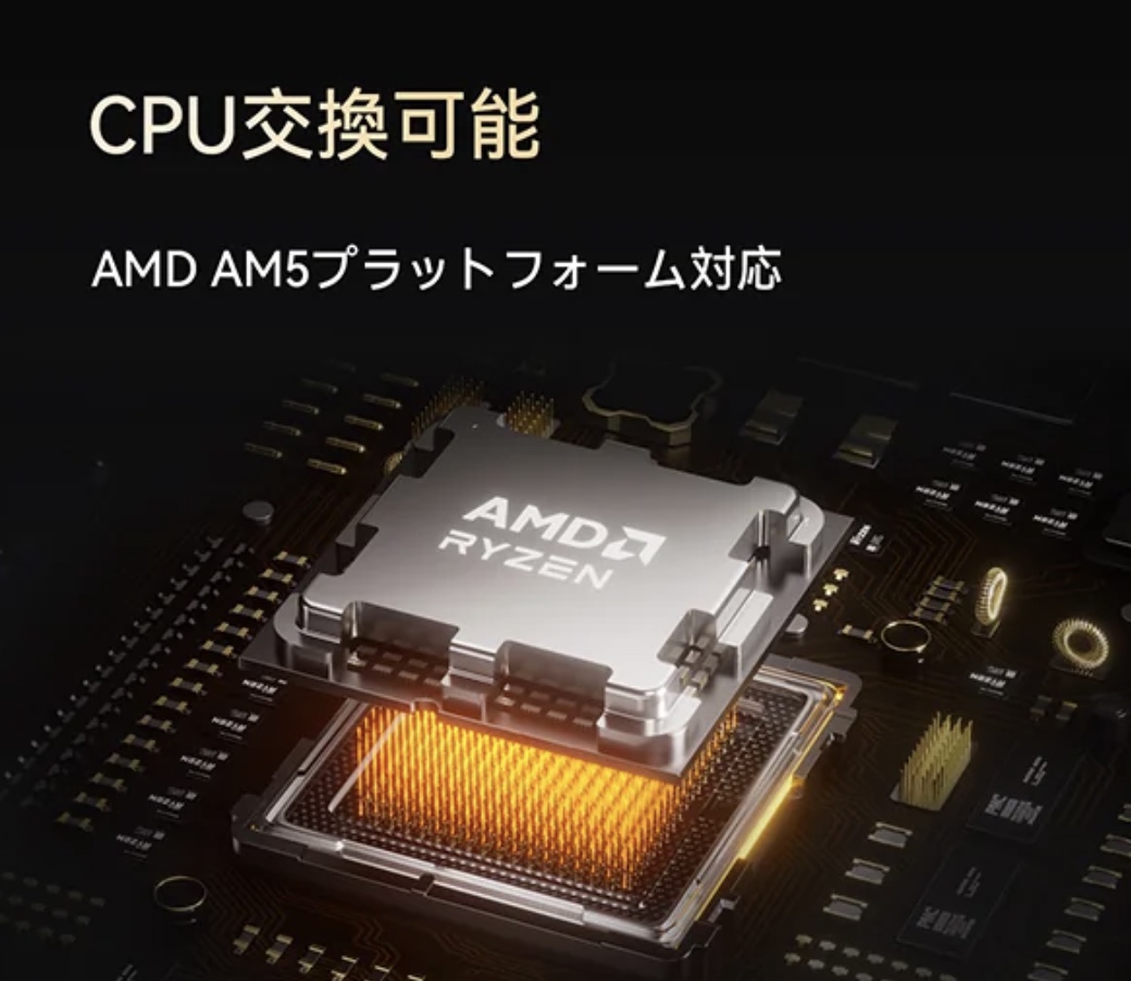 通常版のCPUはAMD Ryzen 7 8700Gですが、ベアボーンならもっと安いCPUで組むこともできるし、ゆくゆくはCPUを交換してパフォーマンスの根本的なアップデートができるのが良いですよねぇ。