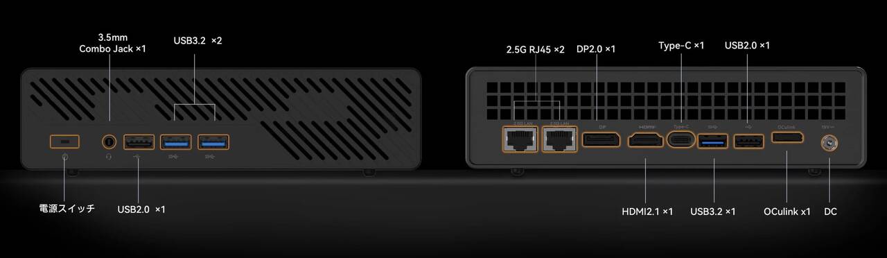 ▼筐体はMiniPCの中では大型なんですが、その代わりにポート類はめっちゃ充実してます。↓