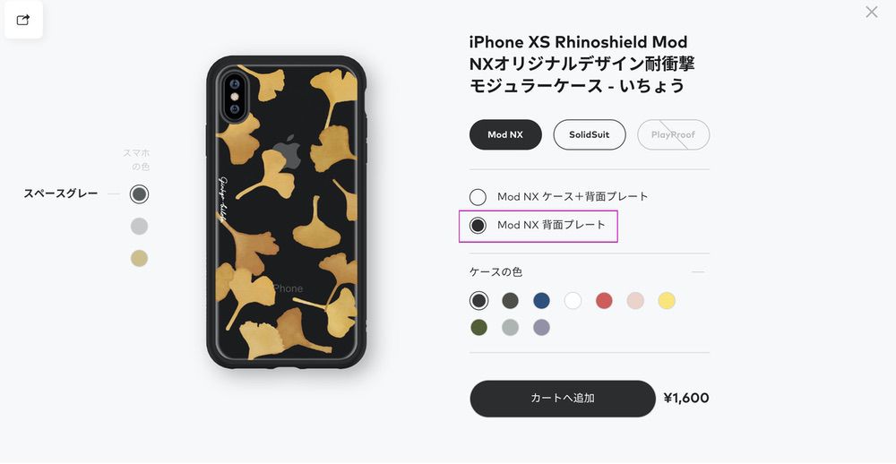 ▼気に入った背面パネルをクリックすると装着イメージ画面が表示されるので「Mod NX 背面プレート」にチェックを入れることで背面パネルのみ別途購入することも可能です!↓