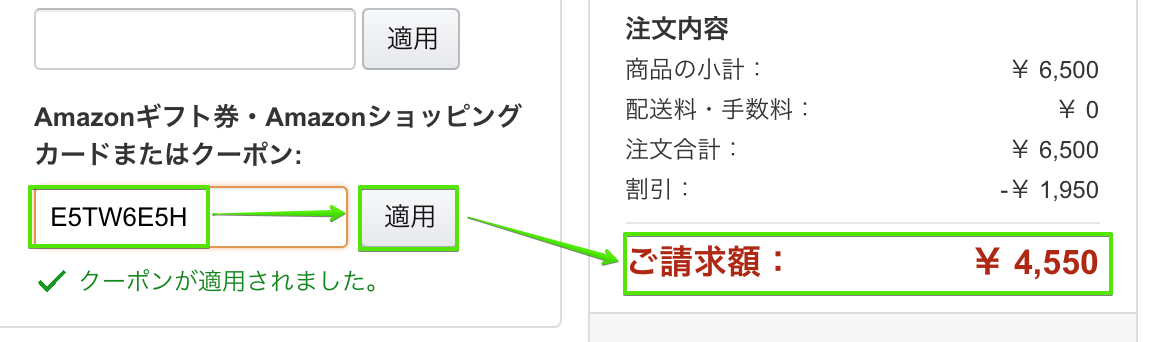 ↓レジ画面でクーポンを入力して適応すると割り引かれます!↓
