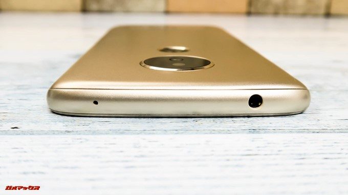 ▼moto e5のスピーカー位置は本体下部ではなく、ディスプレイ上部の受話部分に統合されてました。↓