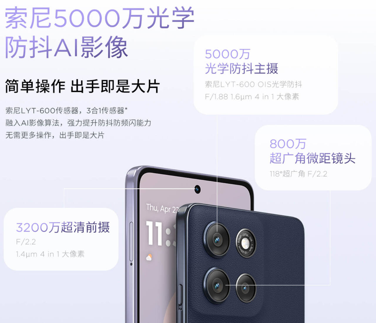 ▼リアカメラは50MP(広角)+8MP(超広角)のデュアルカメラ構成。フロントカメラは32MPです。↓