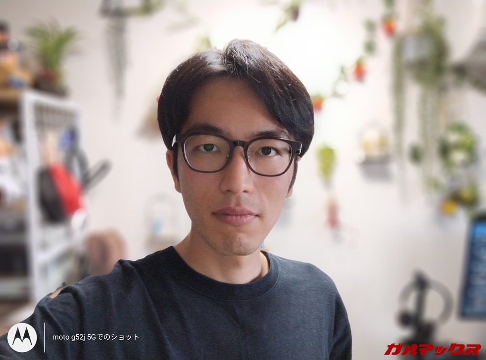 ▼インカメラで撮影。背景ボケのポートレートモードにも対応していました。ビューティー撮影も対応。↓